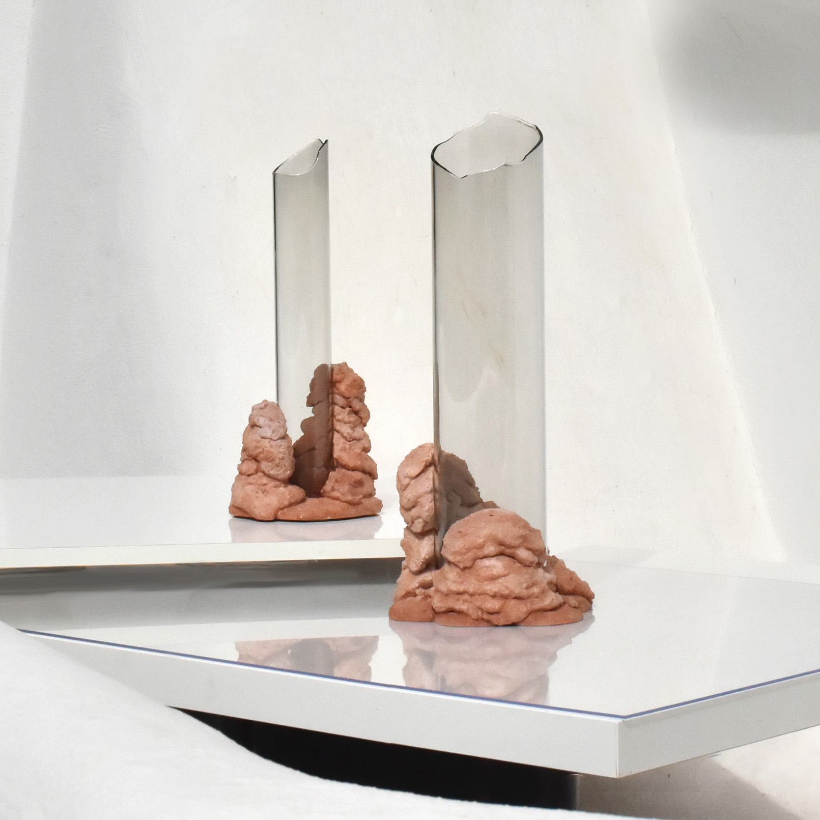 . Borosilicate glass color options (external hand painted): Smoked or Green . Stone color options: Ash Black, Dusty Coral, Soft Sage. |