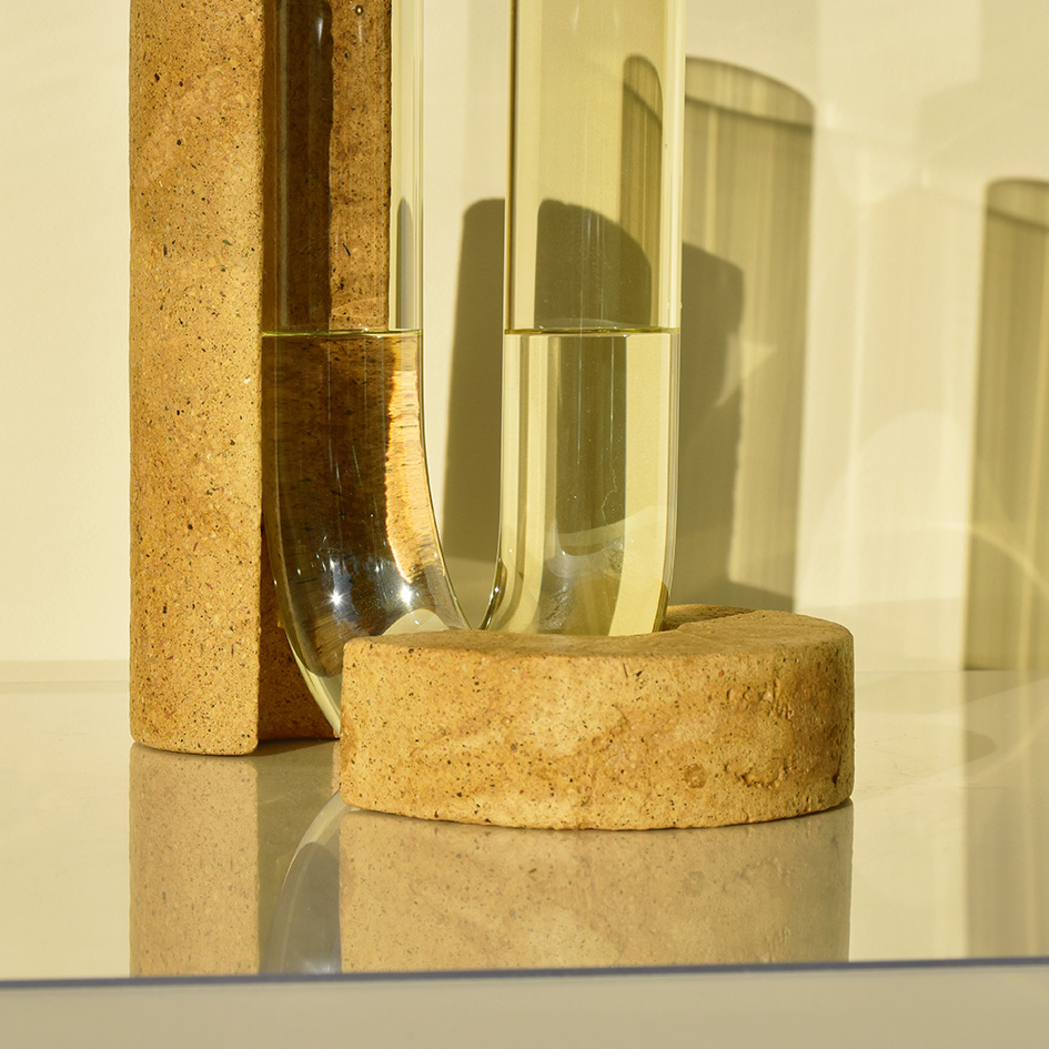 Inspired by the silhouette of snails, this piece is crafted from meticulously handcrafted borosilicate glass and stone, reflecting COKI's commitment to sustainable design. The stone, created in the workshop, is made from fragments of natural Italian rocks and Siena (Tuscany) clay. This innovative material, inspired by ancient Roman techniques, is produced without glue or cement and is slowly dried after being shaped to follow the curve of the glass.